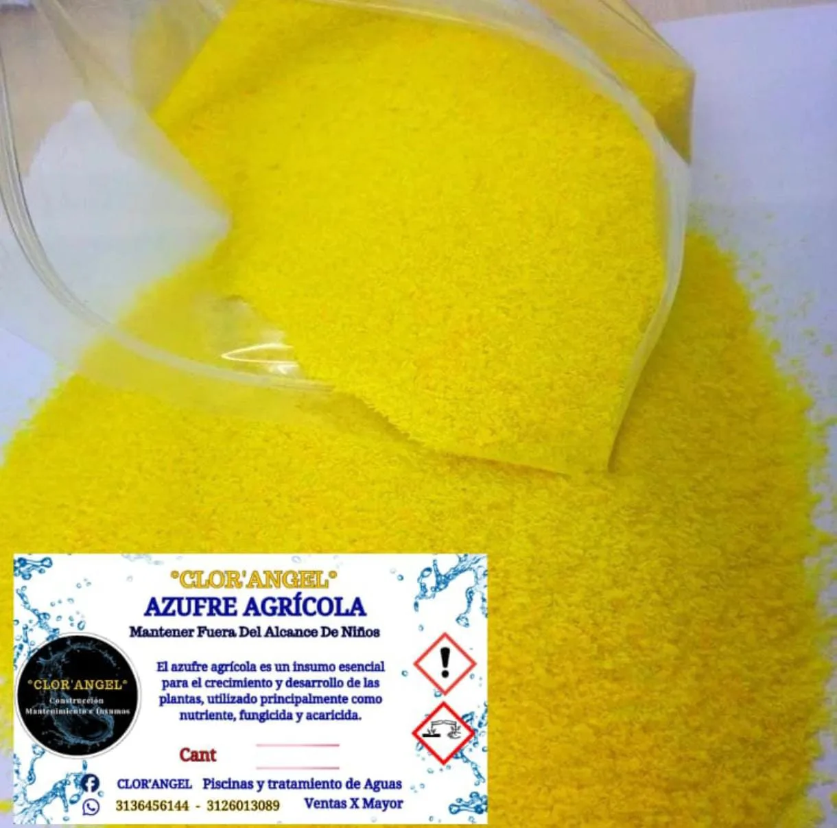 Azufre agrícola de alta pureza, ideal para el control de hongos, ácaros y plagas, además de aportar nutrientes esenciales al suelo. Producto efectivo, de fácil aplicación y ampliamente utilizado como fungicida, acaricida y corrector nutricional.